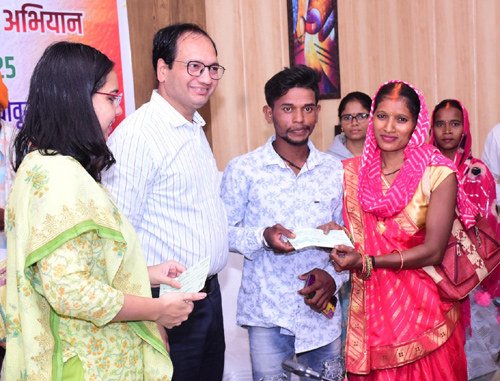 राजनांदगांव। कलेक्टर संजय अग्रवाल ने प्रत्येक मंगलवार को आयोजित साप्ताहिक जनदर्शन कार्यक्रम में पहुंचे चार दिव्यांग दम्पत्तियों को दिव्यांगजन विवाह प्रोत्साहन योजना के अंतर्गत कुल 3 लाख 50 हजार रूपए का प्रोत्साहन राशि का चेक प्रदान किया। कलेक्टर श्री अग्रवाल ने राजनांदगांव विकासखंड के ग्राम आउरदा निवासी बृजकुमार यादव एवं पत्नी श्रीमती अमरबत्ती यादव दोनों दिव्यांग होने पर 1 लाख रूपए का चेक प्रदान किया। इसी तरह डोंगरगढ़ विकासखंड के ग्राम मक्काटोला निवासी प्रदीप टंडन एवं पत्नी श्रीमती कांतिबाघे टंडन और ग्राम नागतराई निवासी राजेन्द्र कुमार टंडन एवं पत्नी श्रीमती प्रेमबत्ती टंडन को एक-एक लाख रूपए का प्रोत्साहन राशि का चेक प्रदान किया गया। डोंगरगांव विकासखंड के ग्राम गुंगेरी नवागांव निवासी श्रीमती किरण कंवर एवं पति खेदूराम कंवर को एक व्यक्ति दिव्यांग होने पर 50 हजार रूपए का प्रोत्साहन राशि का चेक प्रदान किया गया। कलेक्टर श्री अग्रवाल ने दिव्यांग दम्पत्तियों को आशीर्वाद दिया और उज्ज्वल भविष्य की कामना की।