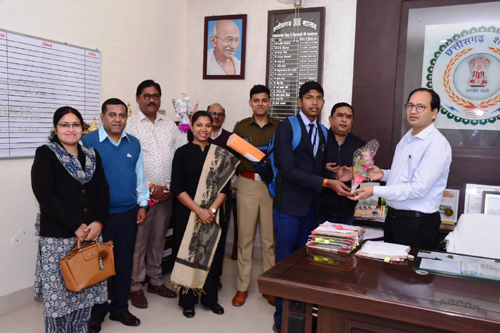 राजनांदगांव। प्रधानमंत्री नरेन्द्र मोदी द्वारा परीक्षा के दौरान विद्यार्थियों के तनाव और डर को दूर करने के लिए को नई दिल्ली में आयोजित होने वाले कार्यक्रम परीक्षा पे चर्चा के आठवें संस्करण के लिए राजनांदगांव जिले से पीएमश्री सर्वेश्वरदास नगर पालिक निगम उत्कृष्ट अंग्रेजी माध्यम विद्यालय राजनांदगांव के कक्षा 11वीं के विद्यार्थी सार्थक जैन का चयन हुआ है। कलेक्टर संजय अग्रवाल से कलेक्टोरेट के कलेक्टर कक्ष में परीक्षा पे चर्चा कार्यक्रम में शामिल होने के लिए नई दिल्ली रवाना होने से पहले विद्यार्थी सार्थक जैन ने मुलाकात की। कलेक्टर ने सार्थक जैन को परीक्षा पे चर्चा कार्यक्रम में शामिल होने के लिए बधाई एवं शुभकामनाएं दी है। साथ ही मुख्य कार्यपालन अधिकारी जिला पंचायत सुश्री सुरूचि सिंह से जिला पंचायत के सीईओ कक्ष में सार्थक जैन ने भेंट की। सीईओ जिला पंचायत ने सार्थक जैन को कार्यक्रम में शामिल होने के लिए शुभकामनाएं दी।