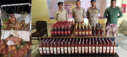 राजनांदगांव। पुलिस अधीक्षक मोहित गर्ग, अंतर्राज्यीय अवैध शराब तस्करी पर अंकुश लगाने के निर्देशानुसार अतिरिक्त पुलिस अधीक्षक राहुल देव शर्मा, पुलिस अनुविभागीय अधिकारी डोंगरगढ़ आशीष कुंजाम के दिशा-निर्देशन में शराब तस्करी रोकने स्थानीय चुनाव में लगे आचार संहिता दौरान एमसीपी कार्यवाही लगाया जा रहा था कि दिनांक 27.01.2025 के देर रात्रि देवरी से राजनांदगांव की ओर आ रही एक पिकअप वाहन क्रमांक एमएच 40-सीडी 2629 जो चिरचारी में लगे एमसीपी को देखकर हड़बड़ाते लापरवाहीपूर्वक वाहन को चलाते सड़क किनारे खडी ट्रक को ठोकर मार दिया। वाहन चालक पकड़े जाने के भय से अंधेरा का फायदा उठाकर घटनास्थल से भाग गया। बागनदी पुलिस द्वारा पिकअप वाहन जिसमें सब्जी पत्तागोभी भरा हुआ था को किनारे कर पिकअप के डाले से रिस रहे द्रव्य में आ रहे शराब की गंध से शराब होने की संदेह पर चेक करने पर पत्तागोभी के बोरियों के बीच में शराब रखा मिला, जिसमें से कुछ बोतले टूट-फुट गया था। बचत बोतलों को समक्ष गवाहन के निकाला गया, जिसमें रॉयल स्टेज 85 बॉटल कीमती 105,400 रूपये, रॉयल चैलेंज 60 बॉटल कीमती 74,400 रूपये, मैक्डावल नंबर-01 35 बॉटल कीमती 34,475 रूपये, ब्लेंडर प्राईड 16 बॉटल कीमती 22,320 रूपये कुल 196 बॉटल कुल मात्रा 147 बल्क लीटर कुल जुमला शराब कीमती 2,36,595 रूपये मध्यप्रदेश निर्मित शराब मिला जिसे मौके पर समक्ष गवाहन शराब एवं पिकअप वाहन कीमती 800000 रूपये जुमला कीमती 1036595 रूपये को जप्त कर कब्जा पुलिस लिया गया। अज्ञात आरोपी पिकअप वाहन के चालक के विरूद्ध अपराध क्रमांक 02/2025 धारा 34 (2), 36 आबकारी एक्ट, 281 बीएनएस कायम कर विवेचना में लिया गया है। अज्ञात वाहन चालक का पता तलाश उठाया गया है। उक्त कार्यवाही में निरीक्षक विजय मिश्रा, सउनि महेश राजपुत, आरक्षक भुपेन्द्र तुमरेकी, कार्तिक यादव, विक्रम चंद्रवंशी, सुनील नवरत्न का सराहनीय भूमिका सराहनीय रही।