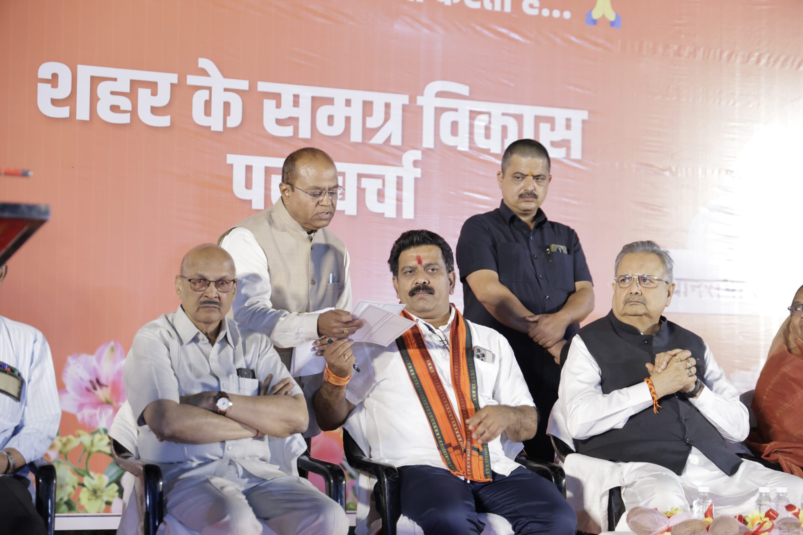 कार्यक्रम को सर्वप्रथम डॉ रमन सिंह ने संबोधित करते हुए कहा कि इस कार्यक्रम में राजनीति की कोई बात नहीं होगी, सिर्फ शहर विकास की चर्चा होगी। उन्होंने स्पष्ट शब्दों में कहा कि आज मैं यहां आप सभी का आशीर्वाद एवं मार्गदर्शन लेने आया हूं। डॉ रमन सिंह ने कहा कि आज वह यहां बैठकर आपकी बातों को सुनेंगे और उस पर अमल करेंगे तथा शहर विकास के लिए योजनाओं को मिल बैठकर साझा करेंगे।