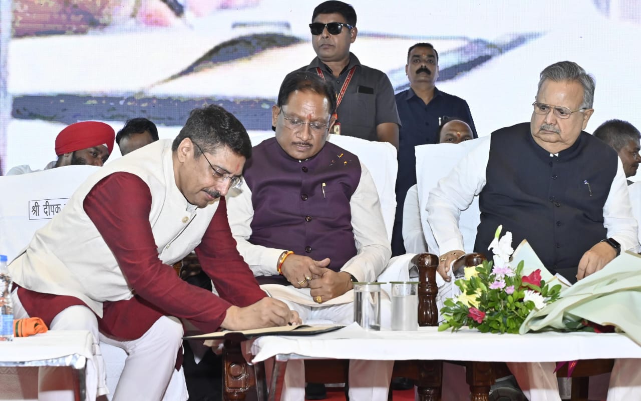 रायपुर। मुख्यमंत्री श्री विष्णु देव साय आज राजधानी रायपुर के पंडित जवाहरलाल नेहरू स्मृति चिकित्सा महाविद्यालय के सभागार में छत्तीसगढ़ मेडिकल सर्विस कॉर्पोरेशन लिमिटेड (सीजीएमएससी) के नव नियुक्त अध्यक्ष श्री दीपक म्हस्के के पदभार ग्रहण कार्यक्रम में शामिल हुए और मुख्य अतिथि की आसंदी से उन्हें शुभकामनाएं दी। इस दौरान मुख्यमंत्री सहित अतिथियों ने सीजीएमएससी सप्लाई चैन मैनेजमेंट एसओपी का विमोचन किया।