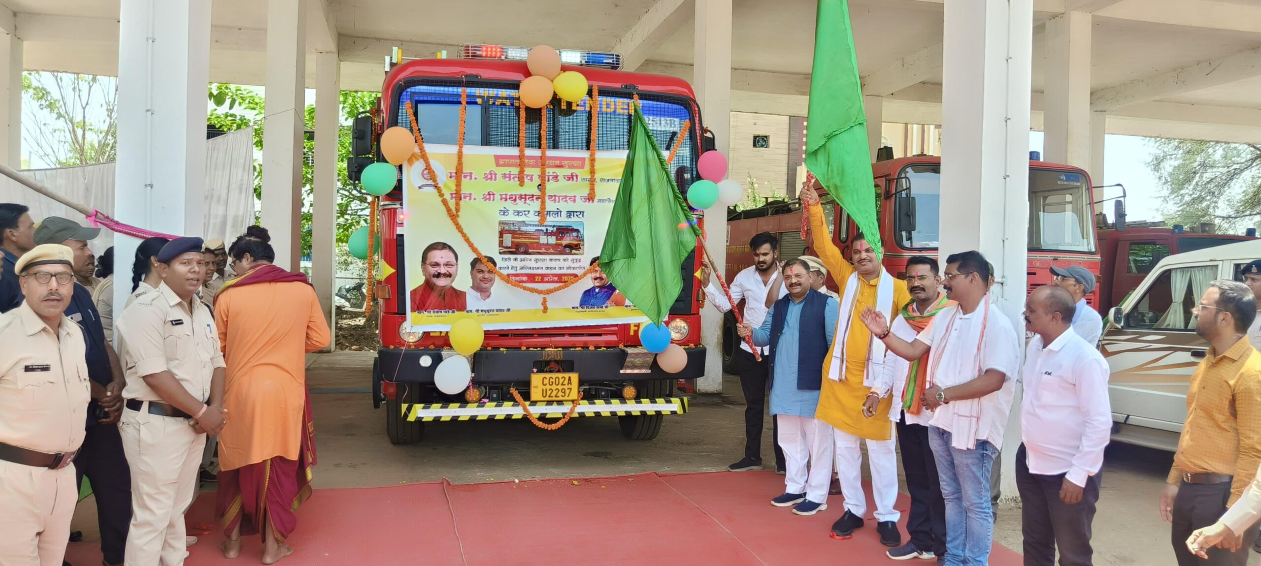 राजनांदगांव। सांसद माननीय संतोष पांडे एवं मधुसूदन यादव महापौर राजनांदगांव के कर कमलो द्वारा जिले के अग्नि सुरक्षा कवच को सुदृढ़ करने हेतु अग्निशमन वाहन (फायर ब्रिगेड गाड़ी) का लोकार्पण किया गया। सांसद संतोष पांडे एवं महापौर मधुसूदन यादव ने पूजा अर्चना कर गाड़ी को हरी झंडी दिखाकर रवाना किए।