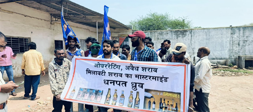 राजनांदगांव। शहर के पटरी पार चिखली शराब दुकान में बहुजन समाज पार्टी द्वारा ओवर रेट में शराब बिकवाने वाले मास्टर माइंड धनपत धु्रव पर कार्रवाई नहीं होने के सूरत में आज विरोध प्रदर्शन किया गया। प्रदर्शनकारियों ने घंटे तक शराब दुकान के समक्ष जमकर नारेबाजी की।