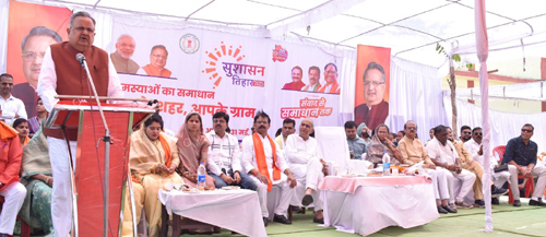 विधानसभा अध्यक्ष डॉ. रमन सिंह ने कहा कि आज प्रदेश व्यापी सुशासन तिहार अंतर्गत आयोजित समाधान शिविर में प्रधानमंत्री आवास योजना अंतर्गत 565 आवास स्वीकृत हुए है। जिसके लिए सभी उन्होंने ग्रामवासियों को हार्दिक बधाई एवं शुभकामनाएं दी। ग्राम टेड़ेसरा के लिए 53 शौचालय निर्माण, 58 आयुष्मान कार्ड, 151 राशन कार्ड का वितरण किया गया है। उन्होंने कहा कि आज लगभग 1 करोड़ 22 लाख रूपए के विभिन्न विकास कार्यों का लोकार्पण एवं भूमिपूजन किया गया है। उन्होंने कहा कि सुशासन तिहार अंतर्गत सबसे ज्यादा मांग प्रधानमंत्री आवास योजना के तहत मिली है। जिसे 1 से 2 वर्षों में सभी आवासों को पूर्ण करने का कार्य करना है। उन्होंने ग्राम टेड़ेसरा के लिए नये पंचायत भवन की स्वीकृति दी तथा 16 लाख रूपए की लागत से गौरव पथ निर्माण, 3 लाख रूपए की लागत से सांस्कृतिक भवन का निर्माण, 3 लाख रूपए की लागत से सीसी रोड निर्माण की स्वीकृति दी। उन्होंने कहा कि इस समाधान शिविर के माध्यम से जनसामान्य की समस्याओं का समाधान हो रहा है। शासन की विभिन्न योजनाओं का लाभ जनसामान्य को मिले, इसके लिए लगातार कार्य किया जा रहा है।