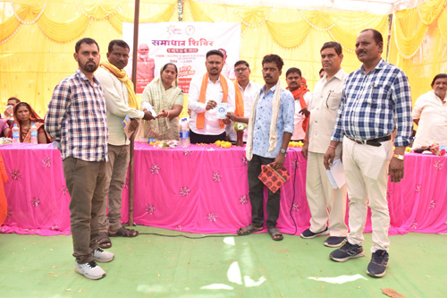समाधान शिविर में कृषि, महिला एवं बाल विकास, श्रम विभाग, स्वास्थ्य विभाग, आयुष विभाग, खाद्य, आबकारी, वन, राजस्व, परिवहन, समाज कल्याण, क्रेडा, सहकारिता विभाग सहित विभिन्न विभागों द्वारा सुशासन तिहार अंतर्गत प्राप्त आवेदनों के निराकरण के संबंध में जानकारी दी गई और अपने-अपने विभाग से संबंधित विभागीय योजनाओं से हितग्राहियों को अवगत भी कराया गया। शिविर में नक्सल प्रभावित हितग्राहियों को प्रधानमंत्री आवास योजना के अंतर्गत आवास स्वीकृति पत्र प्रदान किया गया। इसके साथ ही शिविर में श्रमिक कार्ड, किसान के्रडिट कार्ड, राशन कार्ड, लर्निंग लाईसेंस प्रदान कर विभिन्न योजनाओं से हितग्राहियों को लाभान्वित किया गया। शिविर में विभिन्न विभागों द्वारा विभागीय योजनाओं एवं कार्यक्रमों की जानकारी देने तथा पात्र हितग्राहियों को योजनाओं से लाभान्वित करने के लिए स्टॉल लगाया गया। शिविर में स्वास्थ्य विभाग के स्टॉल में बड़ी संख्या में ग्रामीणों ने रक्त परीक्षण, ब्लड प्रेशर, मधुमेह का परीक्षण कराया। स्वास्थ्य जांच के बाद उन्हें स्वास्थ्य विभाग की ओर से आवश्यकता अनुसार दवाईयों का वितरण किया गया। वही आयुष विभाग के स्टॉल में जनसामान्य को मौसमी बीमारियों की रोकथाम के लिए दवाईयों का वितरण किया गया। इस अवसर पर अध्यक्ष जनपद पंचायत श्रीमती लता सिन्हा, जिला पंचायत सदस्य प्रशांत कोडापे, गिरवर साहू, मनोज कांडे, सरपंच, पंच, सचिव सहित अन्य जनप्रतिनिधि, जिला स्तरीय अधिकारी एवं बड़ी संख्या में ग्रामीणजन उपस्थित थे।