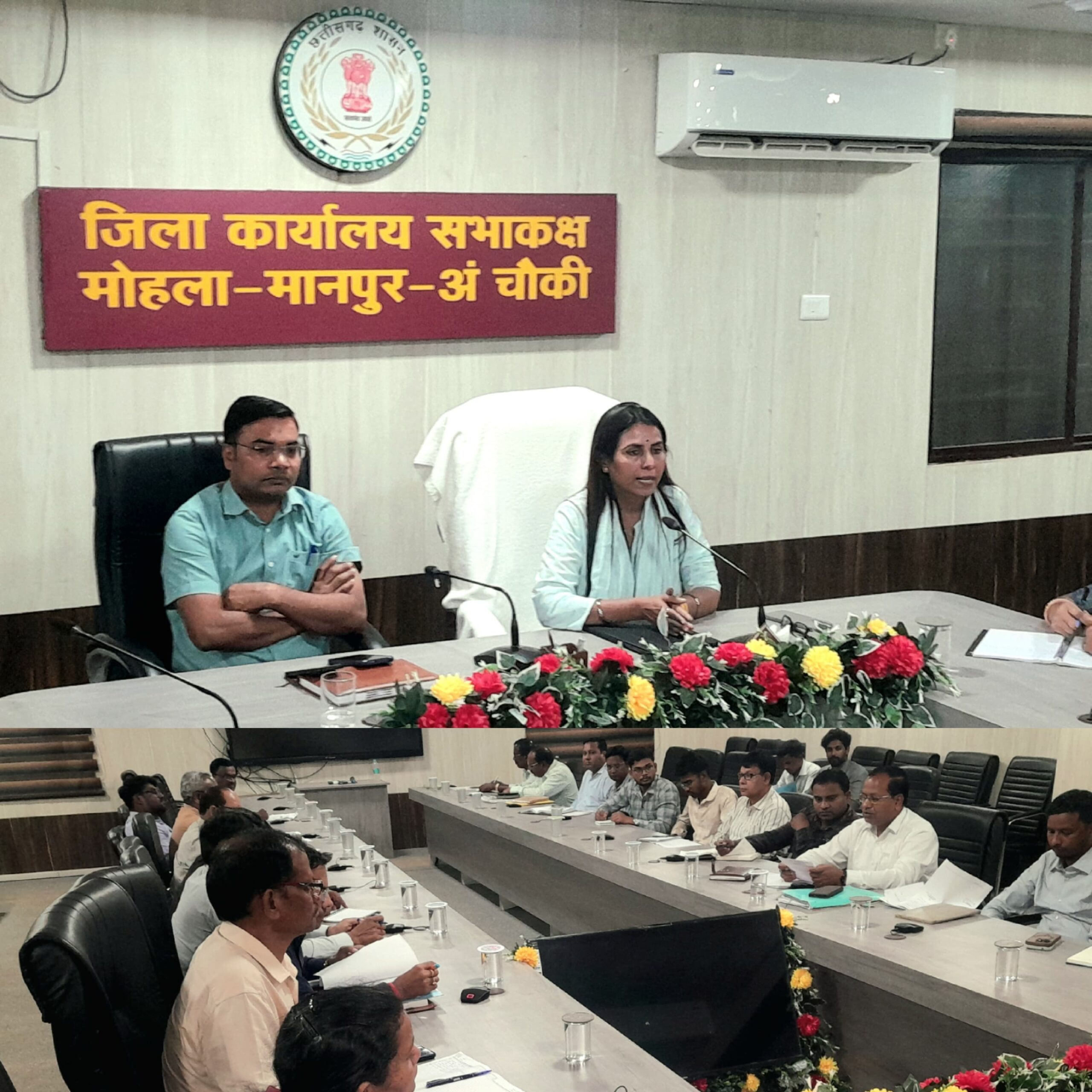 मोहला। प्रभारी कलेक्टर श्रीमती भारती चंद्राकर ने कलेक्टर कार्यालय के सभाकक्ष में अधिकारियों की बैठक ली। बैठक में उन्होंने नवीन स्थानांतरण नीति एवं आगामी धरती आबा जनजाति ग्राम उत्कर्ष अभियान के संबंध में विस्तार से चर्चा की।