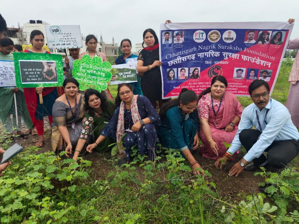 इस अवसर पर नागरिक सुरक्षा सेवा फाउंडेशन के समस्त पदाधिकारियों ने मिलकर वृक्षारोपण कर पर्यावरण के प्रति अपनी प्रतिबद्धता दिखाई। कार्यक्रम में मुख्य रूप से वरिष्ठ प्रदेश उपाध्यक्ष डॉ. गुरप्रीत कौर छाबड़ा, दिव्यांगजन हॉस्पिटल के एडमिन श्री नितिन देवांगन, राजनांदगांव जिला अध्यक्ष श्री राजीव कुमार श्रीवास्तव, महिला विंग (WC) की जिला अध्यक्ष श्रीमती मधुबाला श्रीवास्तव, उपाध्यक्ष डॉ. तरुण रामटेके, महिला विंग की जिला उपाध्यक्ष श्रीमती रेणुका साहू, महिला विंग की जिला महासचिव श्रीमती रितु रायजादा, महिला विंग की जिला सचिव श्रीमती विनोदिनी मारकंडे, जिला सचिव श्री अभिषेक श्रीवास्तव, जिला मीडिया प्रभारी श्री अंकित बालाजी, तथा जिला विधिक सलाहकार श्रीमती कुसुम दुबे की गरिमामयी उपस्थिति रही।