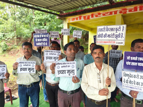 अंबागढ़ चौकी। छत्तीसगढ़ प्रदेश एनएचएम कर्मचारी संघ की 10 सूत्रीय मांगों को लेकर चल रही अनिश्चितकालीन हड़ताल सोमवार को 29वें दिन भी जारी रही। जिला मोहला-मानपुर-अंबागढ़ चौकी में बड़ी संख्या में एनएचएम कर्मचारी धरना स्थल पर जुटे और सरकार के खिलाफ जमकर नारेबाजी की। प्रदर्शनकारियों ने राज्यपाल के नाम पत्र लिखकर इच्छा मृत्यु की अनुमति मांगी है।