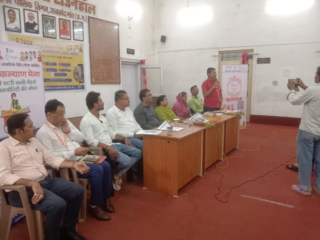 राजनांदगांव। रजत जयंती महोत्सव के अंतर्गत प्रधानमंत्री स्वनिधि योजना के तहत स्ट्रीट वेंडर्स को निजी व्यवसाय के लिए ऋण प्रदान करने हेतु लोक कल्याण मेला का आयोजन नगर निगम टॉउन हाल में किया गया। इस कार्यक्रम में निगम अध्यक्ष श्री टोपेन्द्र सिंह पारस वर्मा और निगम आयुक्त श्री अतुल विश्वकर्मा की उपस्थिति में स्ट्रीट वेंडर्स को ऋण वितरण और बैंक से संबंधित प्रक्रिया पर चर्चा की गई।
