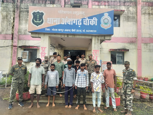आरोपियों में सुनील साहू (25 वर्ष), तुलेश्वर निषाद (19 वर्ष), डिगेश्वर निषाद (21 वर्ष), खिलेश्वर साहू (24 वर्ष), मोहन निषाद (20 वर्ष), रोशन कुमार बंजारे (24 वर्ष), होम लाल चन्द्रवंशी (23 वर्ष), प्रशांत कुमार (26 वर्ष), क्षितिज सलामे (22 वर्ष) एवं विधि से संघर्षरत बालक शामिल है।