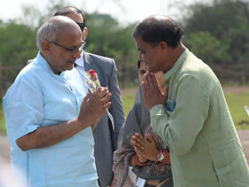 राजनांदगांव। उपराष्ट्रपति सीपी राधाकृष्णन का पुलिस प्रशिक्षण विद्यालय (पीटीएस) ग्राउंड स्थित हेलीपैड पहुंचने पर राज्यपाल रामेन डेका, मुख्यमंत्री विष्णुदेव साय एवं विधानसभा अध्यक्ष डॉ. रमन सिंह ने भावमय स्वागत किया गया। उपराष्ट्रपति से स्थानीय जनप्रतिनिधियों एवं प्रशासनिक अधिकारियों ने सौजन्य भेंट की और पुष्प भेंट कर आत्मीय अभिनंदन किया। पूरे परिसर में स्वागत की तैयारियां भव्य एवं गरिमामय वातावरण में की गई। जिला प्रशासन द्वारा सुरक्षा एवं व्यवस्थाओं के सख्त और सुव्यवस्थित प्रबंध किए गए थे। अधिकारियों और पुलिस बल की तैनाती के साथ पूरी तरह चाक-चौबंद व्यवस्था रही। इस अवसर पर लोक स्वास्थ्य और परिवार कल्याण मंत्री श्याम बिहारी जायसवाल, महापौर मधुसूदन यादव, जिला पंचायत अध्यक्ष श्रीमती किरण वैष्णव, अध्यक्ष छत्तीसगढ़ श्रम कल्याण मंडल योगेशदत्त मिश्रा, पूर्व सांसद प्रदीप गांधी, खूबचंद पारख, सचिन बघेल, दिनेश गांधी, रमेश पटेल, संतोष अग्रवाल, अशोक चौधरी, संभागायुक्त सत्यनारायण राठौर, पुलिस महानिरीक्षक अभिषेक शांडिल्य, कलेक्टर जितेन्द्र यादव, पुलिस अधीक्षक श्रीमती अंकिता शर्मा सहित अन्य जनप्रतिनिधि एवं अधिकारी उपस्थित रहे।
