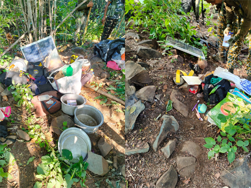 बरामद सामग्रियों में नक्सलियों के वर्दी और पिट्ठू बैग, लिखित दस्तावेज और डायरी, सोलर पैनल और चार्जिंग सेट्स, खाना बनाने के बर्तन, टेंट, तिरपाल, वॉकी-टॉकी सेट, विस्फोटक सामग्री एवं राशन सामग्री शामिल है।