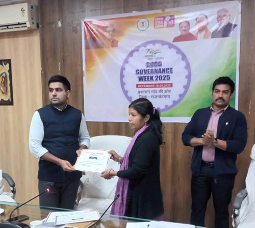 राजनांदगांव। कलेक्टर जितेन्द्र यादव ने आज कलेक्टोरेट सभाकक्ष में धान खरीदी कार्य में उत्कृष्ट प्रदर्शन करने वाले ग्रामीण कृषि विस्तार अधिकारियों, पटवारियों, समिति प्रबंधकों एवं डाटा एण्ट्री ऑपरेटरों को प्रशस्ति पत्र प्रदान कर सम्मानित किया। कलेक्टर ने ग्रामीण कृषि विस्तार अधिकारी छुरिया सुश्री दीक्षा नंदेश्वर, ग्रामीण कृषि विस्तार अधिकारी सीतागोटा डिम्पल खापर्डे, ग्रामीण कृषि विस्तार अधिकारी कोकपुर शैलेश साहू, पटवारी छुरिया प्रशांत सिंह ठाकुर, पटवारी घोघरे आशीष साहू, पटवारी बम्हनी चारभाटा सोनम कोकिला, पटवारी घुपसाल डेविड भूआर्य, पटवारी राहुल कसेट, पटवारी हुकुम चंद महिलांग, समिति प्रबंधक जोब धनसिंग, समिति प्रबंधक गहिराभेड़ी बसंत, समिति प्रबंधक कुमर्दा मनकलाल साहू, डाटा एण्ट्री ऑपरेटर धान उपार्जन केन्द्र बोरतालाव भागचंद साहू, डाटा एण्ट्री ऑपरेटर धान उपार्जन केन्द्र गहिराभेंडी रिमन्त कुमार साहू, डाटा एण्ट्री ऑपरेटर धान उपार्जन केन्द्र जोब विनोद साहू को प्रशस्ति पत्र प्रदान कर सम्मानित किया।