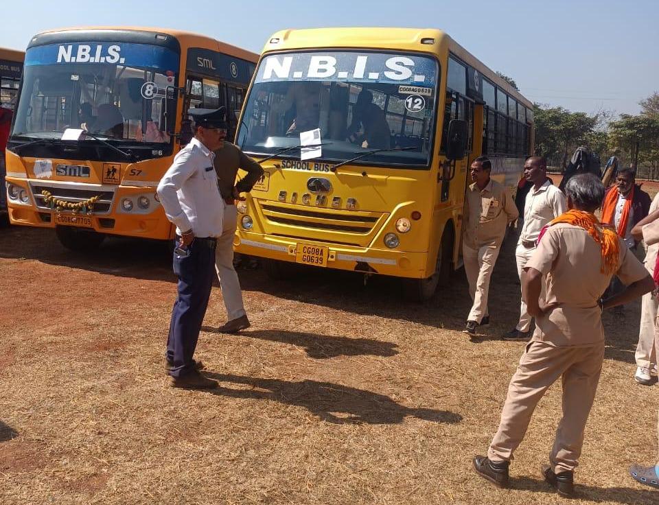 राजनांदगांव। सड़क सुरक्षा माह के तहत पुलिस और परिवहन विभाग ने आज शहर के विभिन्न स्कूलों की स्कूली बसों का संयुक्त निरीक्षण किया। इस दौरान पुलिस अधीक्षक सुश्री अंकिता शर्मा के निर्देशन में, अतिरिक्त पुलिस अधीक्षक श्री पुष्पेन्द्र नायक और अति. क्षेत्रीय परिवहन अधिकारी श्री आनंद शर्मा के मार्गदर्शन में परिवहन स्टाफ एवं यातायात पुलिस ने संस्कार सिटी स्कूल, युगान्तर पब्लिक स्कूल, एरॉन जेस्टसन, यशोदा पब्लिक स्कूल, गायत्री विद्यापीठ, गायत्री गुरूकुल, अजीज पब्लिक स्कूल, एनबीआईएस बोरी, एनपीपीएस, रॉयल किड्स कॉन्वेंट, अधविता पब्लिक स्कूल, स्वामी विवेकानंद, दिल्ली पब्लिक स्कूल, नीरज विद्या मंदिर, आरपीएस स्कूल, सरस्वती शिशु मंदिर डोंगरगढ़ और अनुपम विद्यालय सहसपुर दल्ली की 104 स्कूल बसों का भौतिक सत्यापन और दस्तावेज जांच की।