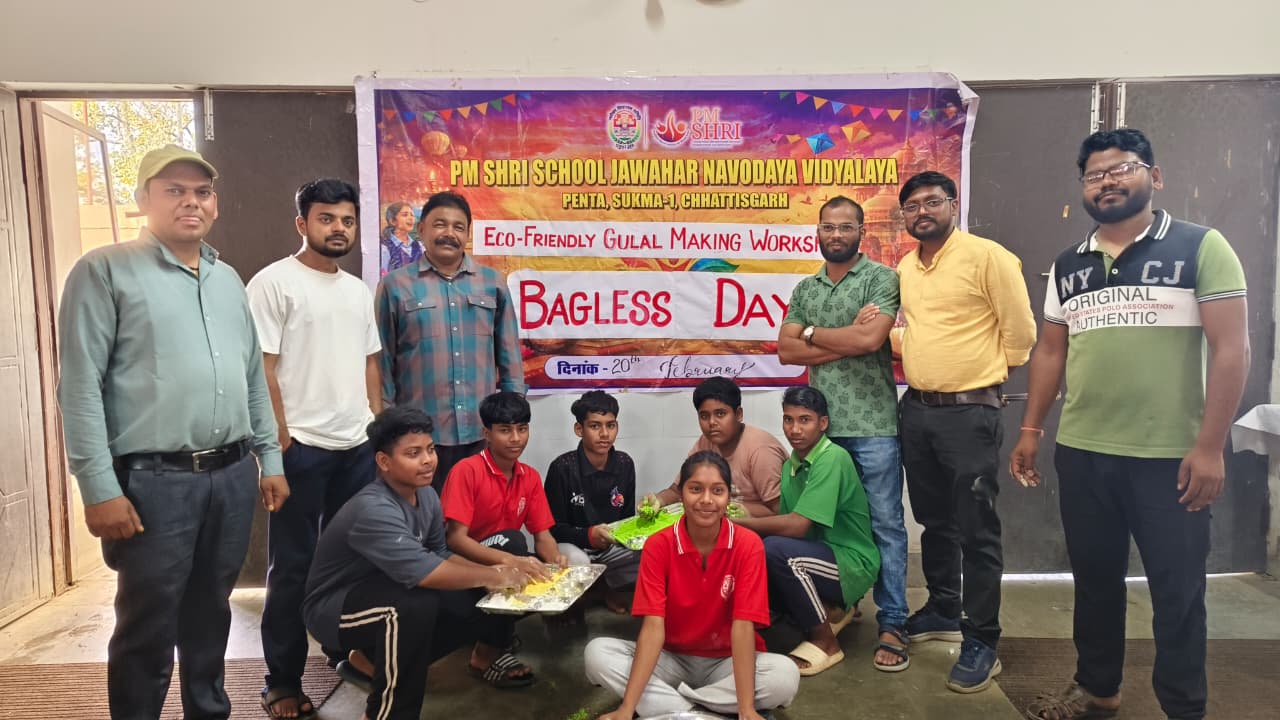 सुकमा। पीएमश्री जवाहर नवोदय विद्यालय सुकमा-1 में बैगलेस डे गतिविधि के अंतर्गत विद्यार्थियों के लिए एक विशेष शैक्षिक एवं रचनात्मक कार्यक्रम का आयोजन किया गया। इस अवसर पर विद्यार्थियों को बिना किसी रासायनिक पदार्थ के पूर्णतः प्राकृतिक तरीके से गुलाल बनाना सिखाया गया। विद्यार्थियों ने फूलों एवं सब्जियों से प्राकृतिक रंग तैयार कर पर्यावरण अनुकूल होली के महत्व को समझा।