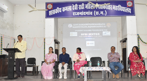 राजनांदगांव। शासकीय कमलादेवी राठी महिला स्नातकोत्तर महाविद्यालय, राजनांदगांव में 10 से 13 फरवरी 2026 तक नेशनल स्टॉक एक्सचेंज और छत्तीसगढ़ सरकार के सहयोग से स्टूडेंट स्कीलिंग प्रोग्राम का आयोजन किया गया। यह कार्यक्रम बैंकिंग फायनेंसियल सर्विस एंड इंश्योरेंस (बीएफएससी) क्षेत्र में छात्राओं को कौशल प्रशिक्षण देने के उद्देश्य से आयोजित हुआ था। महाविद्यालय की 86 छात्राओं ने इस प्रशिक्षण कार्यक्रम में भाग लिया और अपने कौशल को निखारा।
