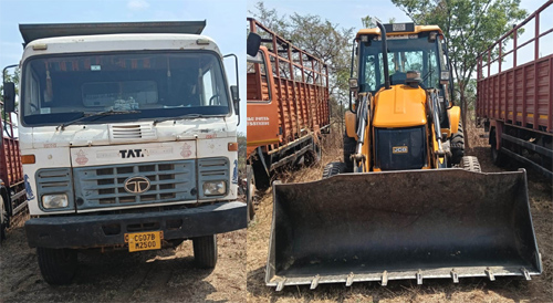 राजनांदगांव में खनिज अवैध उत्खनन और परिवहन पर कार्रवाई, वाहन और जेसीबी जब्त