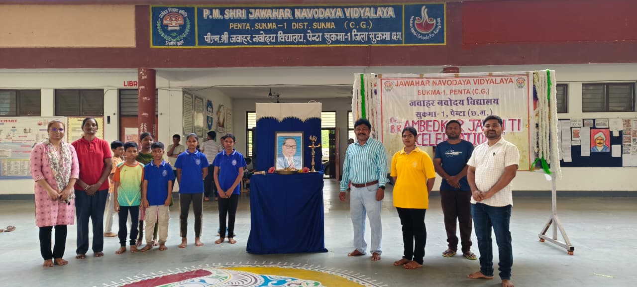 सुकमा। पीएमश्री जवाहर नवोदय विद्यालय, पेंटा (सुकमा-1) में भारत के महान संविधान निर्माता एवं समाज सुधारक डॉ. भीमराव रामजी अम्बेडकर जी की जयंती अत्यंत श्रद्धा, उत्साह एवं गरिमा के साथ मनाई गई। पूरा विद्यालय परिसर उनके विचारों की ऊर्जा और प्रेरणा से ओत-प्रोत दिखाई दिया।