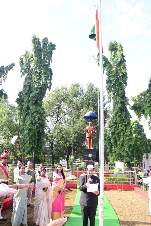 राजनांदगांव। कलेक्टर संजय अग्रवाल ने स्वतंत्रता दिवस पर आज कलेक्टोरेट में राष्ट्रीय ध्वज फहराया। कलेक्टर ने राष्ट्रपिता महात्मा गांधी, संविधान निर्माता बाबा साहब डॉ. भीमराव आम्बेडकर एवं छत्तीसगढ़ महतारी की प्रतिमा पर माल्यार्पण किया। कलेक्टर ने जिला कार्यालय के सभी अधिकारियों एवं कर्मचारियों को स्वतंत्रता दिवस की हार्दिक बधाई एवं शुभकामनाएं दी। इस दौरान कलेक्टर ने उपस्थित सभी अधिकारी-कर्मचारियों को तिरंगे की शपथ दिलाई। इस मौके पर सभी ने हर घर तिरंगा कैनवास बोर्ड पर हस्ताक्षर भी किया। कलेक्टर ने इस दौरान कलेक्टोरेट सभाकक्ष में जिला कार्यालय के सभी अधिकारियों एवं कर्मचारियों से मुलाकात की।