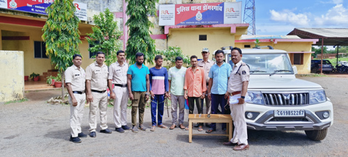 राजनांदगांव। पुलिस अधीक्षक मोहित गर्ग के निर्देश एवं अतिरिक्त पुलिस अधीक्षक राहुल देव शर्मा तथा पुलिस अनुविभागीय अधिकारी डोंगरगांव दिलीप सिंह सिसोदिया राजनादगांव के मार्गदर्शन एवं थाना प्रभारी डोंगरगांव निरीक्षक उपेन्द्र कुमार के नेतृत्व में थाना डोंगरगांव क्षेत्र मे चोरी, लुट, अवैध शराब बिक्री, अपहरण के मामलों व संवेदनशील मामलों के गतिविधियां पर लगातार नजर रखी जा रही है। दिनांक 1 सितंबर 2024 को आरी निवासी अमित के लिखित आवेदन पर उनके भाई को 5 अज्ञात व्यक्तियों के द्वारा ग्राम अमलीडीह एबीस फैक्ट्री के पास से सुभाष गोंड़ को गाली-गलौज कर जान से मारने की धमकी दिये एवं मारपीट करते हुये एक व्यक्ति अपने पास रखे चाकू से डरा धमका कर बोलेरो वाहन क्रमांक सीजी 19-बीएस 2287 में मारपीट करते हुये जबरदस्ती वाहन के अंदर डालकर राजनांदगांव की ओर भाग गये। रिपोर्ट पर धारा सदर का अपराध कायम कर विवेचना में लिया गया है। प्रकरण के गंभीरता को देखते हुये त्वरित कार्यवाही करते हुये अपहृता के मोबाईल नंबर का लोकेशन सायबर सेल राजनांदगांव से प्राप्त कर थाना डोगरगांव पुलिस एवं सायबर सेल के साथ संयुक्त टीम गठित कर प्राप्त लोकेशन (जिला कांकेर) के ग्राम भेजा के चौंक जंगल के पास पहंुचकर बारीकी से पता तलाश करने पर एक बोलेरो वाहन में 5 व्यक्ति एवं अपहृता सुभाष की पहचान हुआ। 5 व्यक्तियों को अभिरक्षा में लेकर पुछताछ करने पर पांचों एक राय होकर पैसों के लेन-देन के संबंध में दिनांक 1 सितंबर 2024 के करीबन 14.30 बजे अमलीडीह एबीस फैक्ट्री के सामने अपहृत सुभाष को अश्लील गाली-गलौच कर जान से मारने की धमकी देकर चाकू की नोंक पर डरा धमका कर मारपीट कर जबरदस्ती वाहन बोलेरो में डालकर अपहरण कर ग्राम भेजा कांकेर में लाना जुर्म स्वीकार करने से आरोपियों के कब्जे से एक नग चाकू एवं एक वाहन वाहन जप्त कर आरोपीगणों अनितराम गोटा पिता दुकाल राम गोटा, जाति-गोंड़, उम्र-35 साल, पता-शीतला पारा, वार्ड नंबर 01, ग्राम भेजा, थाना-कोरर, जिला उत्तर बस्तर कांकेर, सतीश कोसमा पिता श्यामसुंदर कोसमा उर्फ छोटू, जाति-हल्बा, उम्र-30 साल, पता-मंडल पारा, वार्ड नंबर 03, ग्राम तरहूल, थाना भानुप्रतापपुर, जिला उत्तर बस्तर कांकेर, जीतूराम उसेंडी पिता रामसिंग उसेंडी, जाति-गोंड़, उम्र-28 साल, पता-मंडल पारा, वार्ड नंबार 03, ग्राम तरहूल, थाना भानुप्रतापपुर, जिला उत्तर बस्तर कांकेर, सनीत कुमार यादव पिता शिवप्रसाद यादव, जाति-राउत, उम्र-23 साल, पता-मंडल पारा, वार्ड नंबर 02, ग्राम तरहूल, थाना भानुप्रतापपुर, जिला उत्तर बस्तर कांकेर, रमेश कुमार यादव पिता बलीराम यादव, उम्र-34 साल पता-जामनगर पारा, वार्ड नंबर 12, ग्राम कालागांव, थाना कच्चे, उत्तर बस्तर कांकेर को प्रकरण में गिरफ्तार कर कानूनी मंशा से अवग