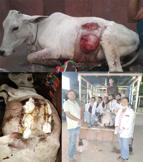 सड़क हादसे में गाय जख्मी, बजरंग दल एवं पशु चिकित्सालय के प्रयासों से हुआ सफल उपचार