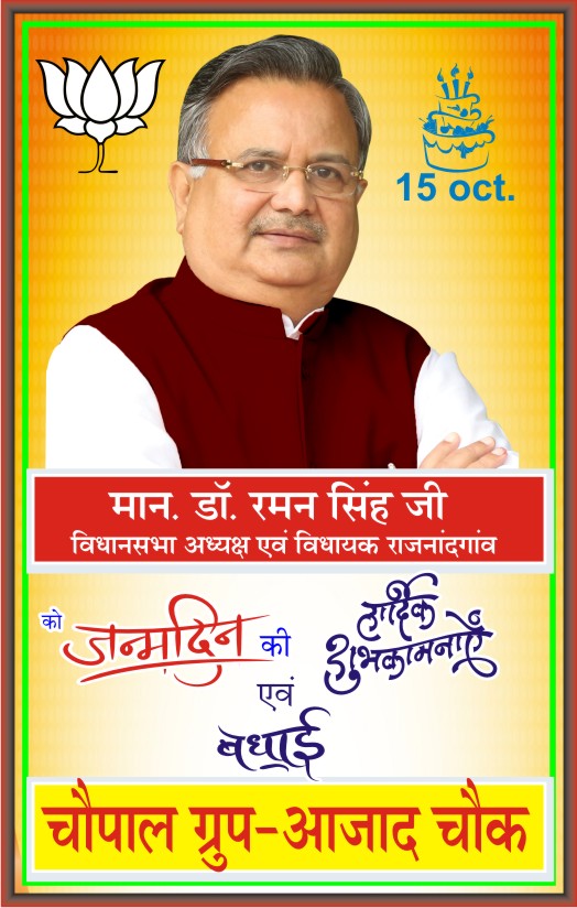 राजनांदगांव। छत्तीसगढ़ विधानसभा के अध्यक्ष व स्थानीय विधायक डॉ. रमन सिंह का कल दिनांक 15 अक्टूबर को जन्मदिन है, इसे […]